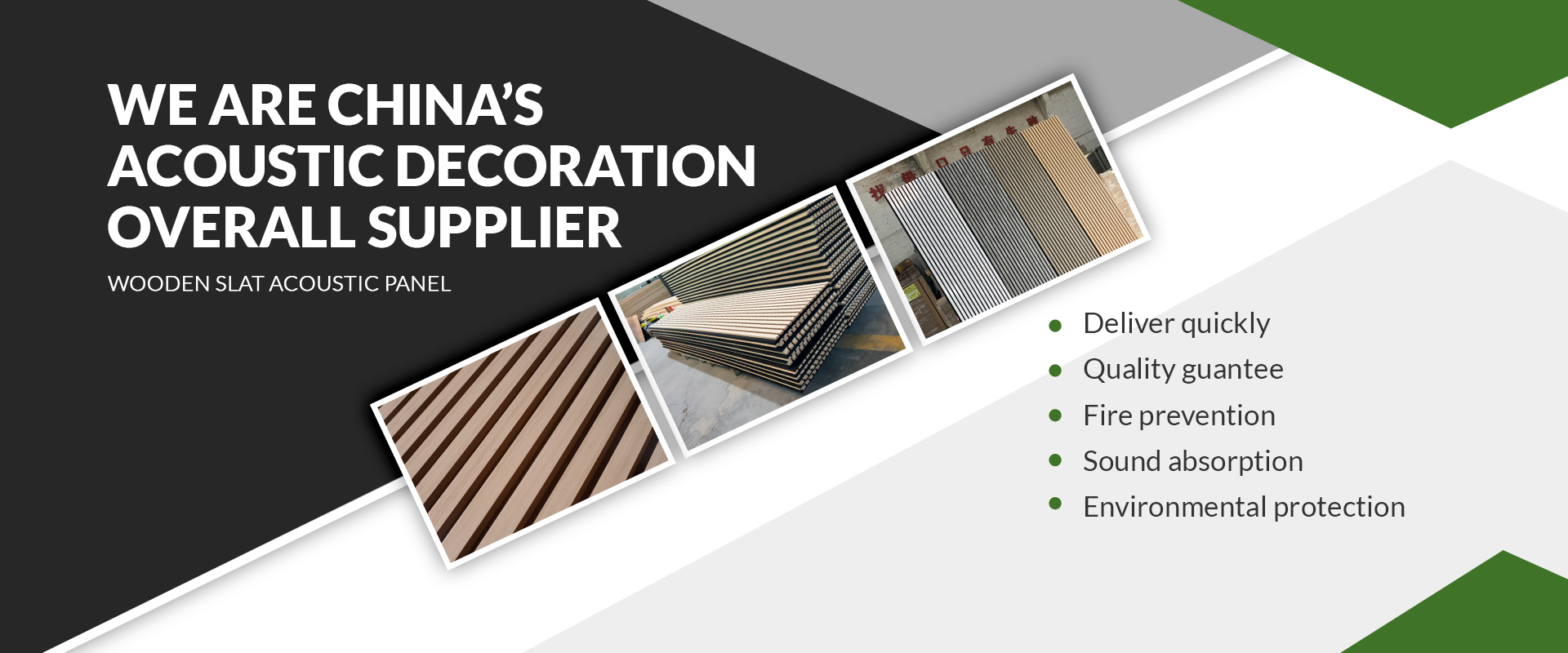 The main production materials are Wooden Acoustic Panel, Polyester Acoustic Panels,Cloth Acoustic Panel, Wood wool Acoustic Panel, Soundproof chamber, sound insulation felt, shock absorber and other sound-absorbing and sound insulation materials, our products have passed CE,1S09001 and SS certificates,In addition, we require all recycled polyester used in our products to meet global recycling standards. Only recycled polyester that meets global recycling standards is used.