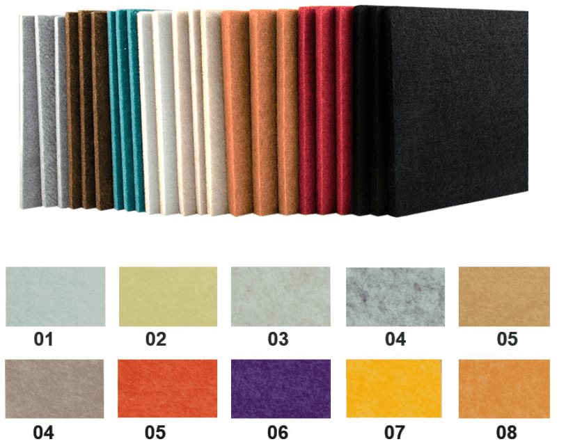 Polyester fiber acoustic panels are 100% polyester fiber using high tech thermoforming, cocoon made of cotton,a sound-absorbing Excellent insulation material products. and you can easily find a solution that suits your home and office environment, Soundproof panels have an unparalleled ability to absorb noise, preventing noise from being reproduced in the room and contributing to a more comfortable indoor feel.