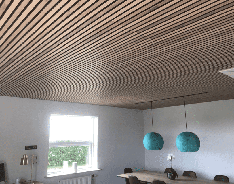 A:Yes, you can install our panels on the ceiling. For safety reasons, we always recommend the most secure installation type for ceiling installations, which is fastening the panels with screws into your joists. If the panels are going to be installed parallel to the joists, you can always add battens to the ceiling first, and mount the panels to the battens.